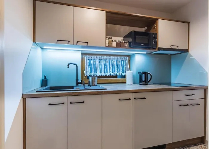 Tento apartmán je zhruba 4 km od Údolí Harenda. Divine Mercy church in Zakopane je v 10 minutách pěší chůze. Centrum města je pouze 5 km daleko, a letiště Mezinarodni letiste Jana Pavla II Krakov - Balice je 120 km daleko. Apartmán Apartamenty Chlabowka leží v těsné blízkosti Jaszczurówka.